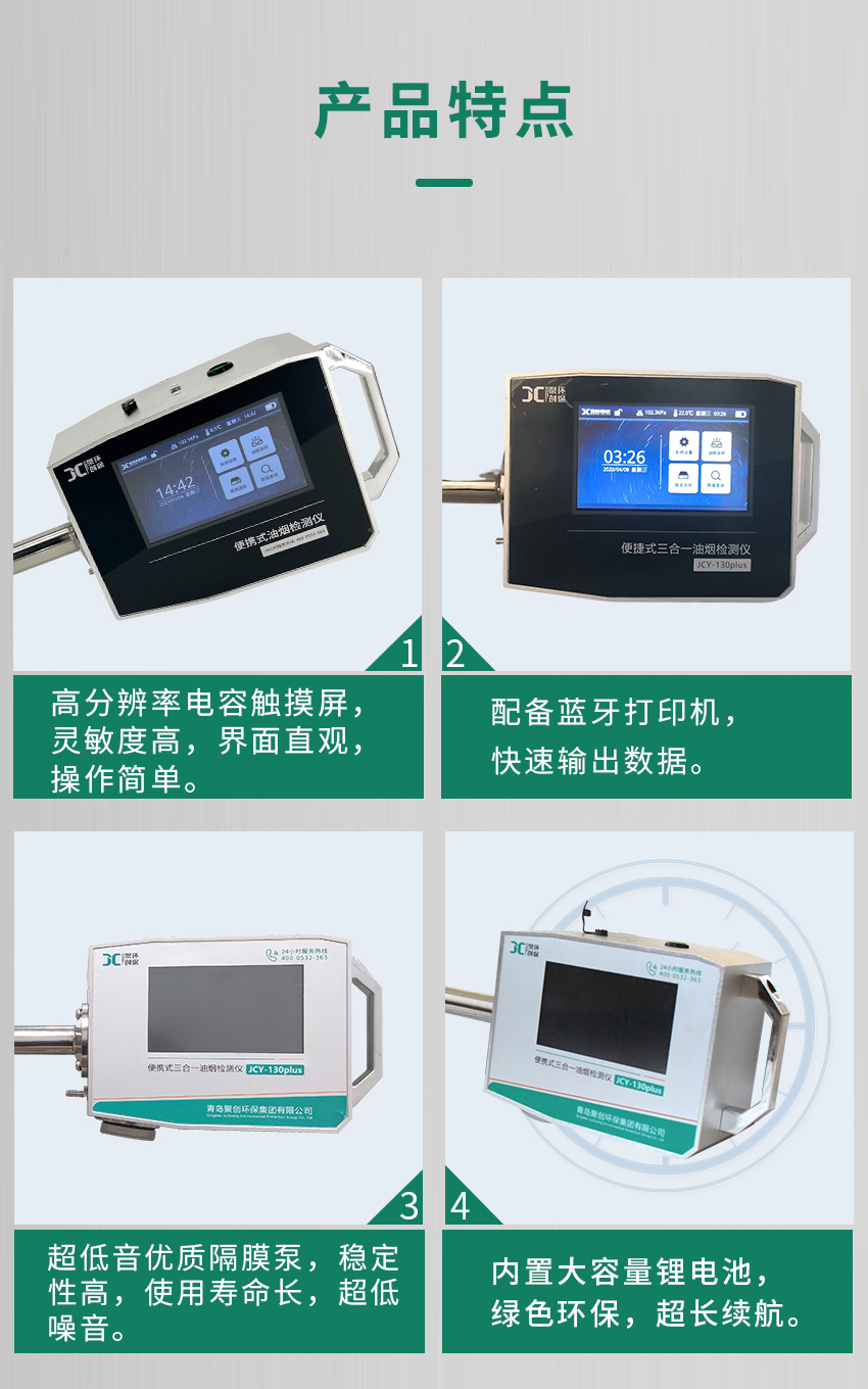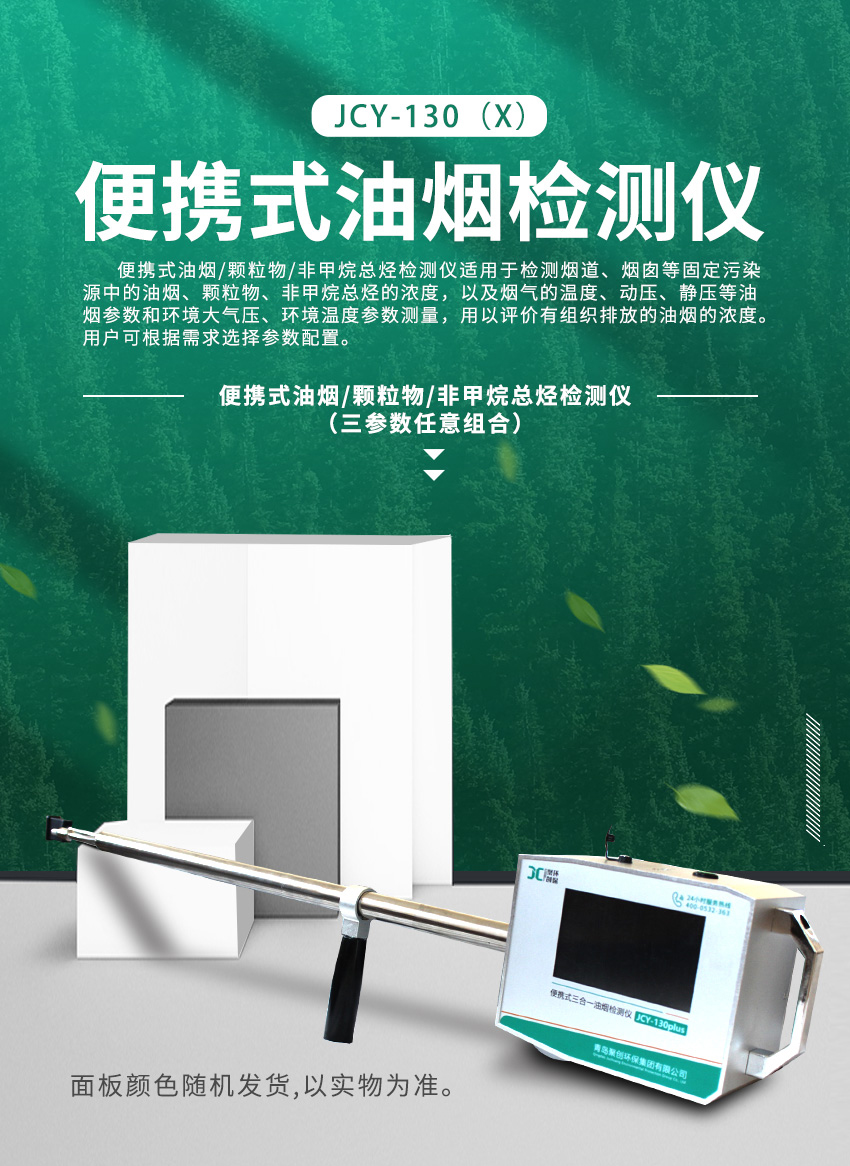 一、儀器描述 JCY-130(X)便攜式油煙檢測儀(以下簡稱檢測儀)是主要用于采集煙道、煙囪中的油煙排放濃度。該檢測儀滿足JJG 680-2007《煙塵采樣器檢定規程》、JJG 518-1998《皮托管檢定規程》、GB16157-1996《固定污染源排氣中顆粒物測定與氣態污染物采樣方法》、HJ/T48-1999《煙塵采樣器技術條件》、GB18483《飲食業油煙排放標準》的要求,產品性能穩定、操作方便、小型便攜、流量穩定,大大減少了勞動強度。 二、適用范圍 JCY-130(X)便攜式油煙檢測儀具有便攜性強、精準度高、實時性好、操作簡便、多功能性和數據記錄與傳輸等優勢,并且具備廣泛的應用場景,是餐飲油煙治理的重要工具之一。廣泛應用于餐廳、飯店、機關食堂等單位的烹飪油煙排放濃度檢測,亦可用于工業非食用油煙(瀝青煙、松香煙等)的排放濃度檢測。適用于環境監測、監察部門、城市管理行政執法(城管)部門、高校、科研院所等場所的油煙排放監測和管理。 三、適用標準 1.JJG 680-2007《煙塵采樣器檢定規程》 2.JJG 518-1998《皮托管檢定規程》 3.GB16157-1996《固定污染源排氣中顆粒物測定與氣態污染物采樣方法》 4.HJ/T48-1999《煙塵采樣器技術條件》 5.GB18483《飲食業油煙排放標準》 四、使用環境 1.工作電源:DC16.8V 2A; 2.環境溫度:(-20~70)℃; 3.環境濕度:(0~95)%RH無凝結; 4.大氣壓力:(70~130)kPa; 5.野外工作時,應有防雨、雪、塵以及日光曝曬等侵襲的措施。