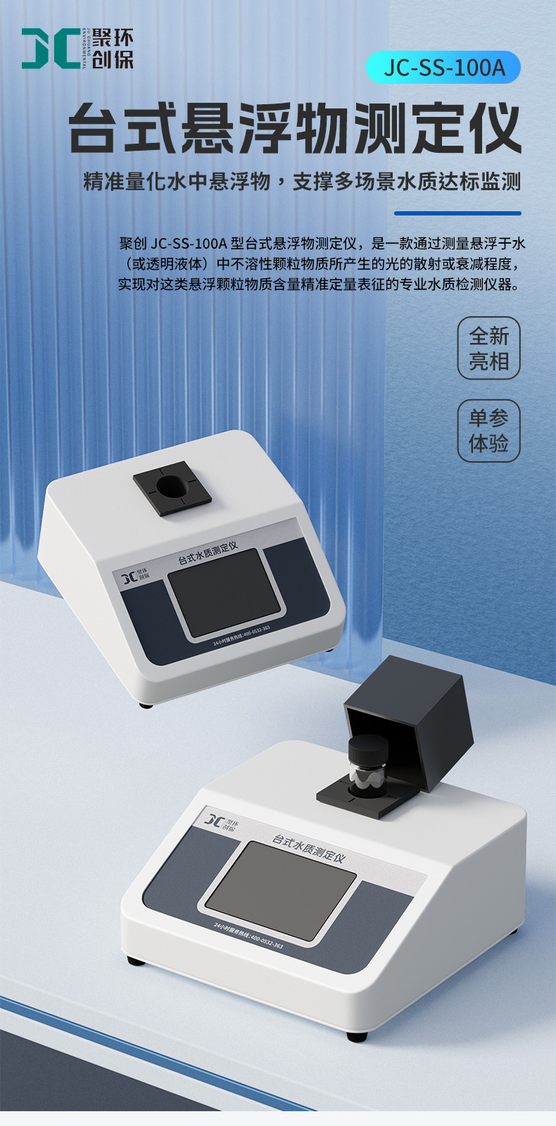 聚創JC-SS-100A型臺式懸浮物測定儀用于測量懸浮于水(或透明液體)中不溶性顆粒物質所產生的光的散射或衰減程度,并能定量表征這些懸浮顆粒物質的含量。本儀器可廣泛用于水廠、食品、化工、冶金、環保等部門,是常用的實驗室儀器。